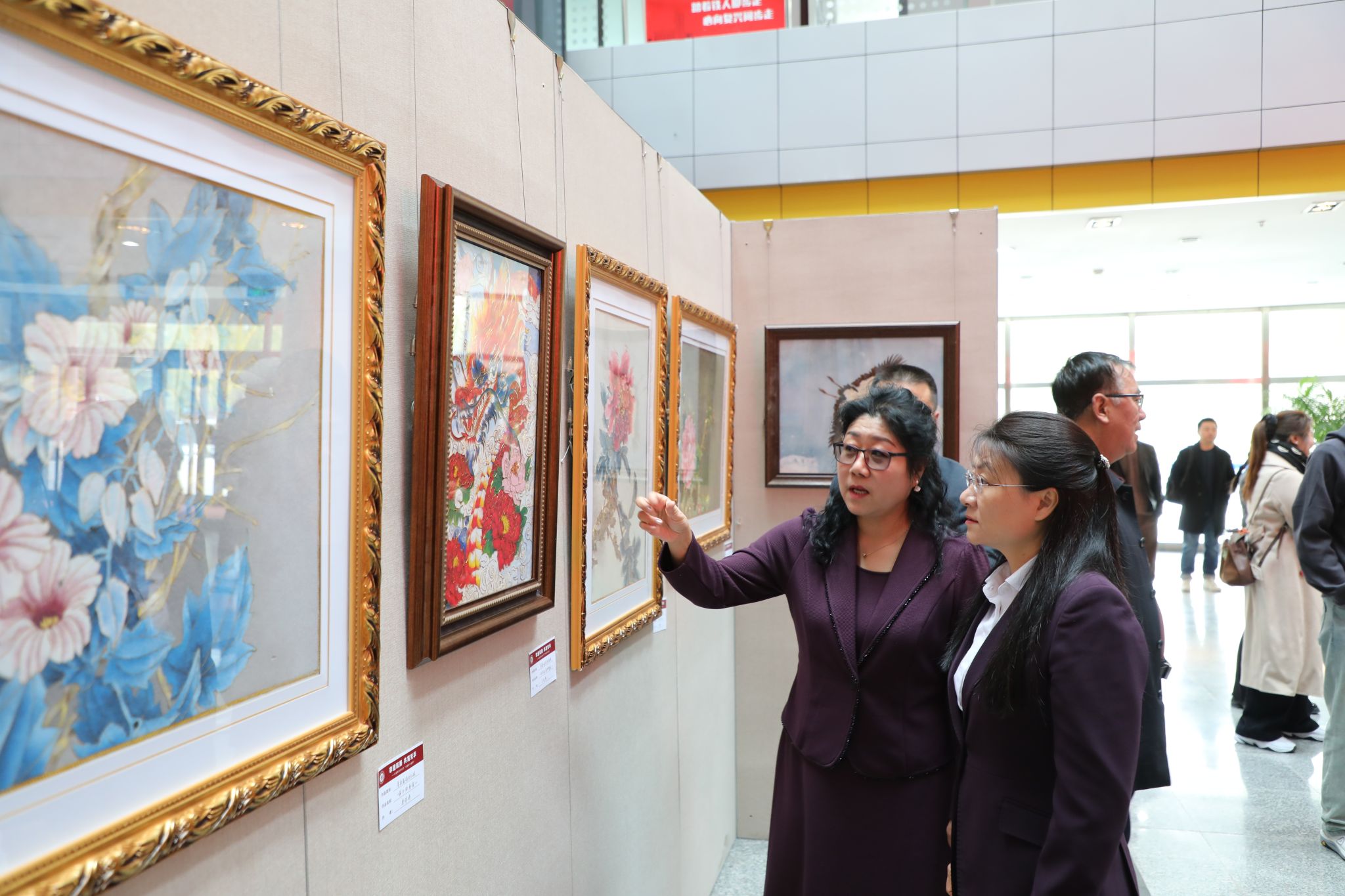 作为文化节的重要组成部分,非遗美术作品展于机关楼一楼持续展出,作品包括剪纸、版画、芦苇丝画、景泰蓝掐丝珐琅等六大类62幅匠心之作。这些作品跨越地域与民族,将传统技艺与现代审美巧妙融合,于方寸之间承载着中华各族儿女共通的情感与智慧,呈现了艺术学院美育教学与非遗活化的丰硕成果。
