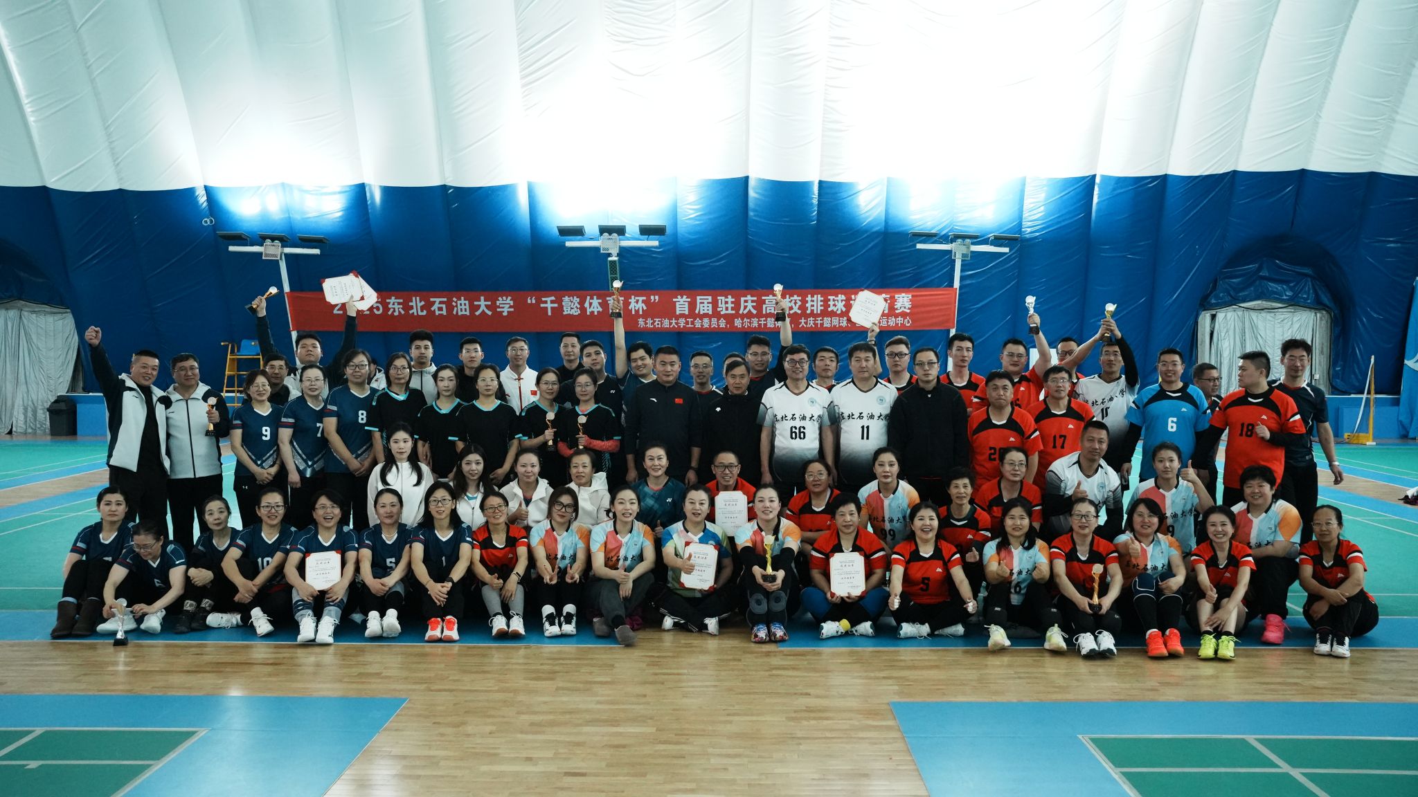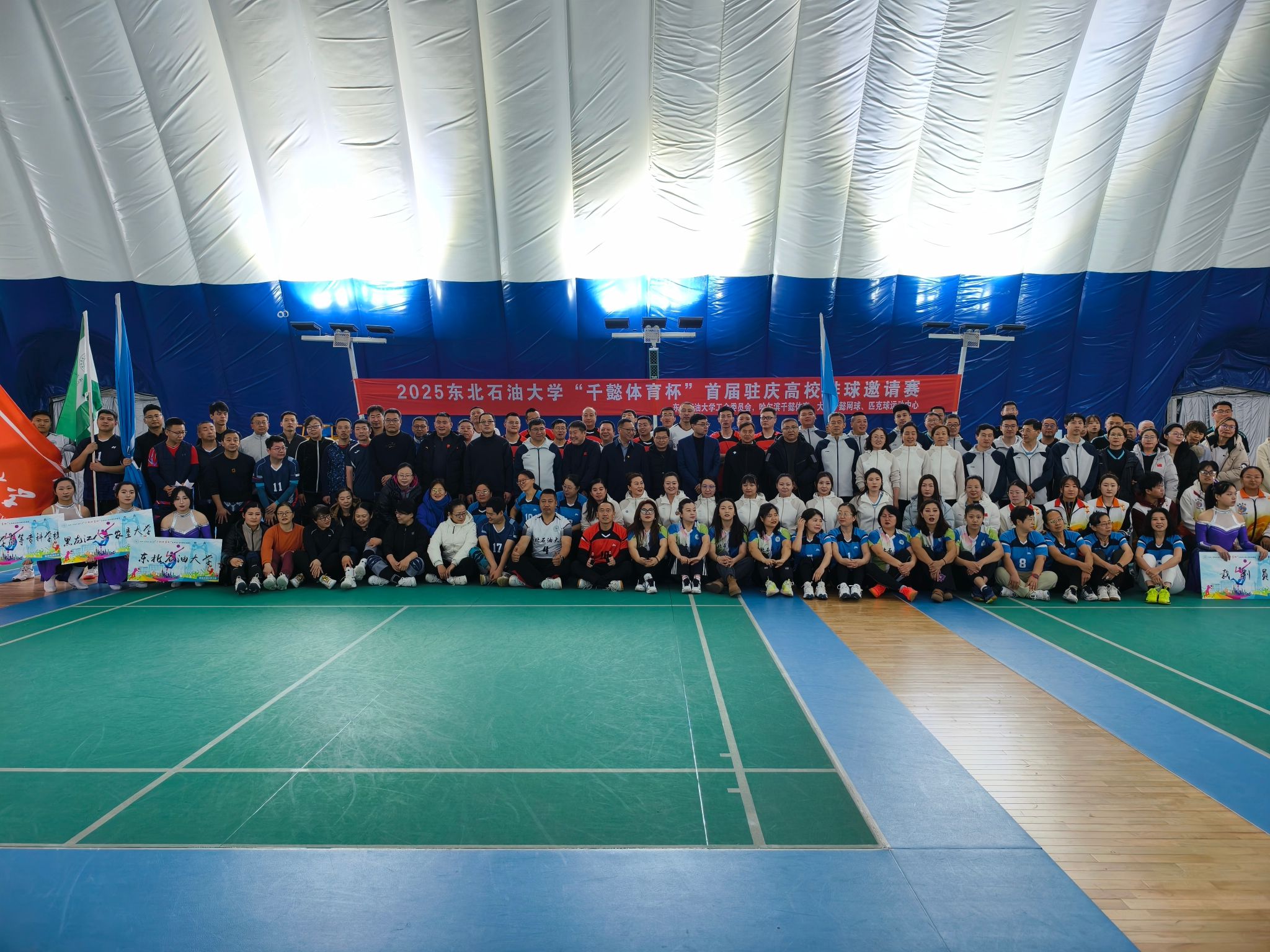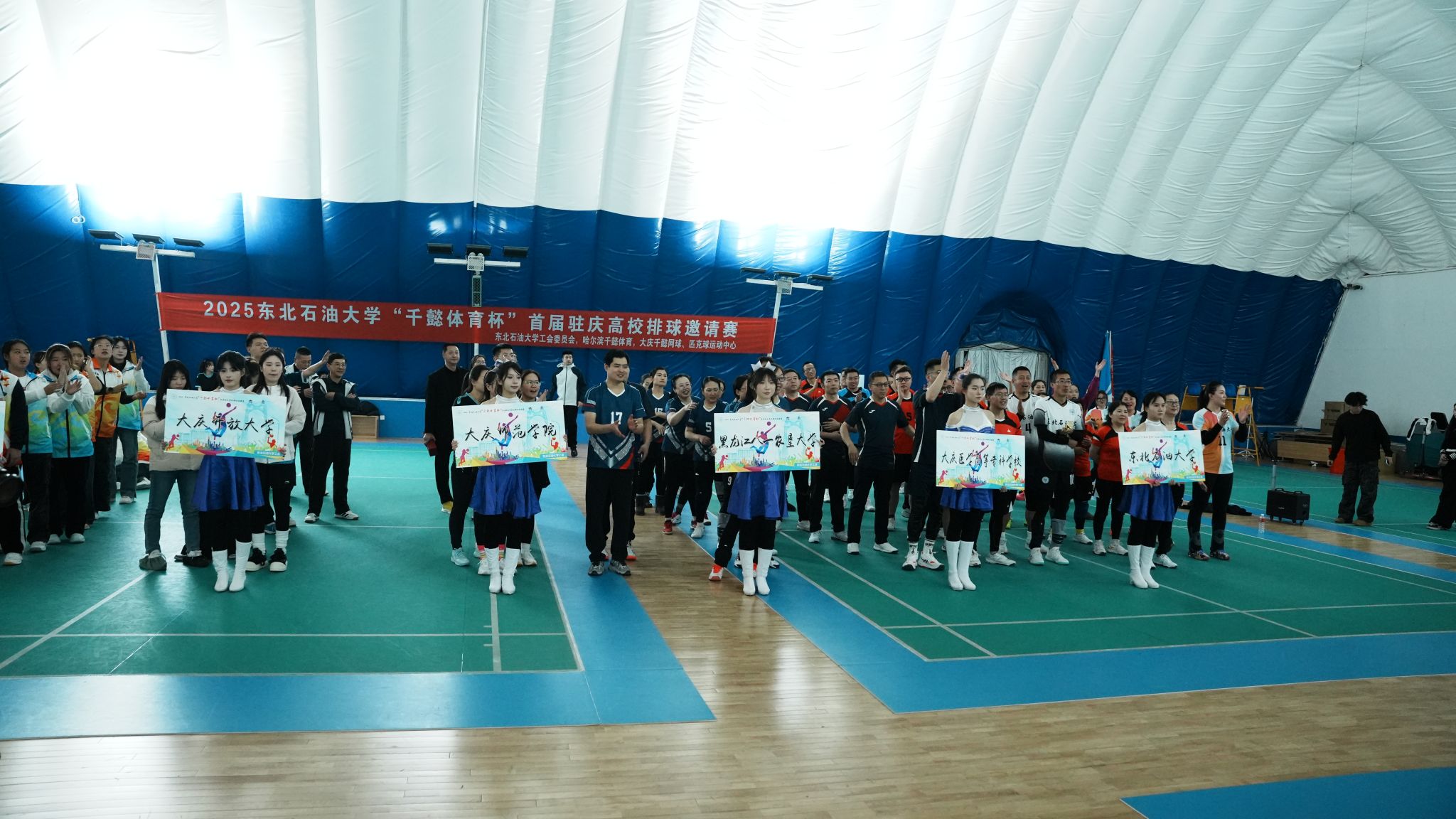 (记者 于晓雪)为促进大庆市各高校体育交流,展现高校教师精神风采,积极落实“文化润校”工程,11月29日,由哈尔滨千懿体育有限公司冠名、东北石油大学校工会主办的2025东北石油大学“千懿体育杯”首届驻庆高校排球邀请赛正式拉开帷幕。东北石油大学校党委副书记、工会主席于长青,黑龙江八一农垦大学工会副主席耿军,大庆医学高等专科学校党委副书记、工会主席陈庆余,大庆开放大学校长于天龙,大庆开放大学副校长梁文超、大庆开放大学副校长张云斌出席开幕式。来自黑龙江八一农垦大学、大庆师范学院、大庆医学高等专科学校、大庆开放大学五所驻庆高校男女共计11支队伍参赛。