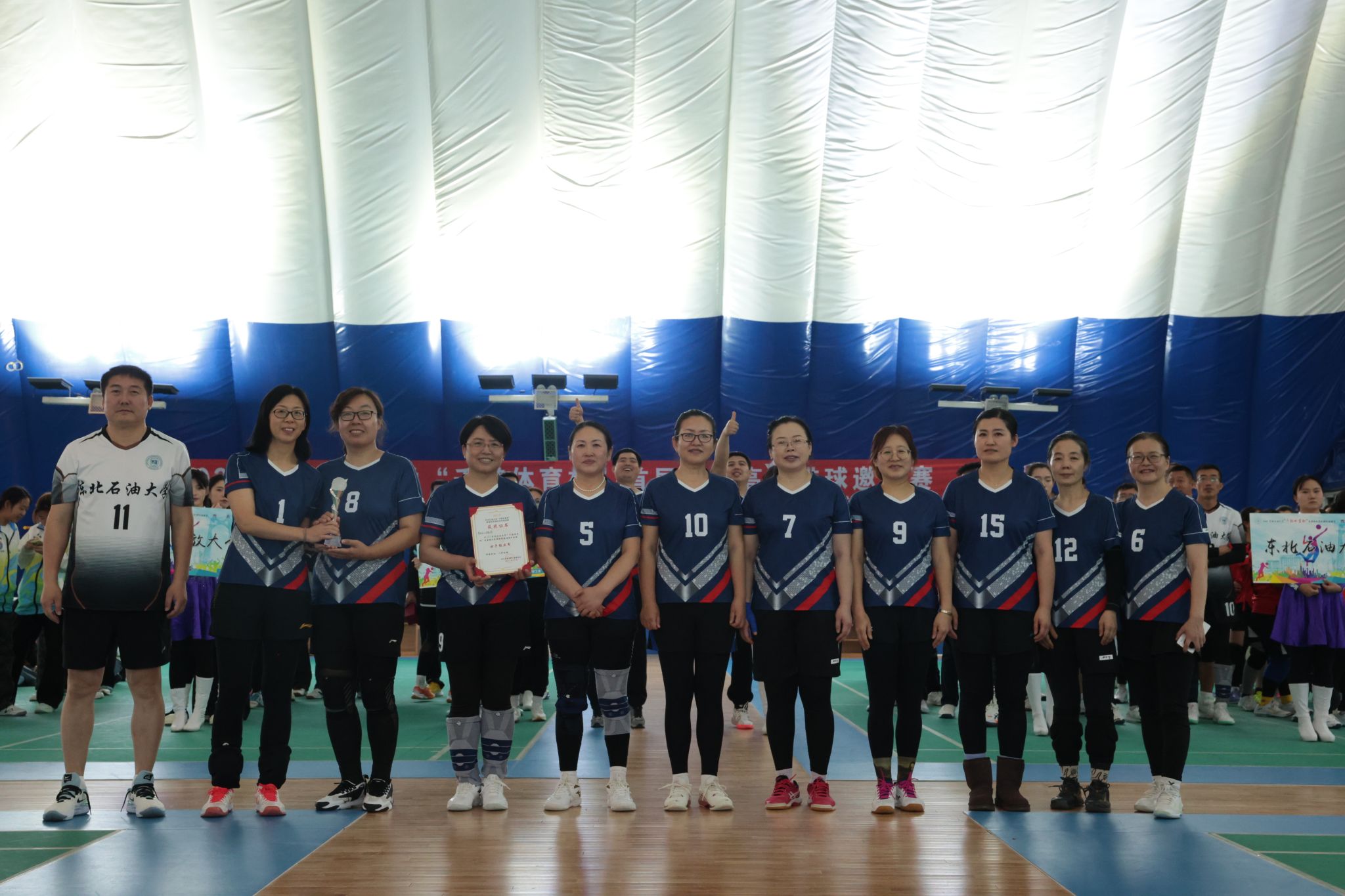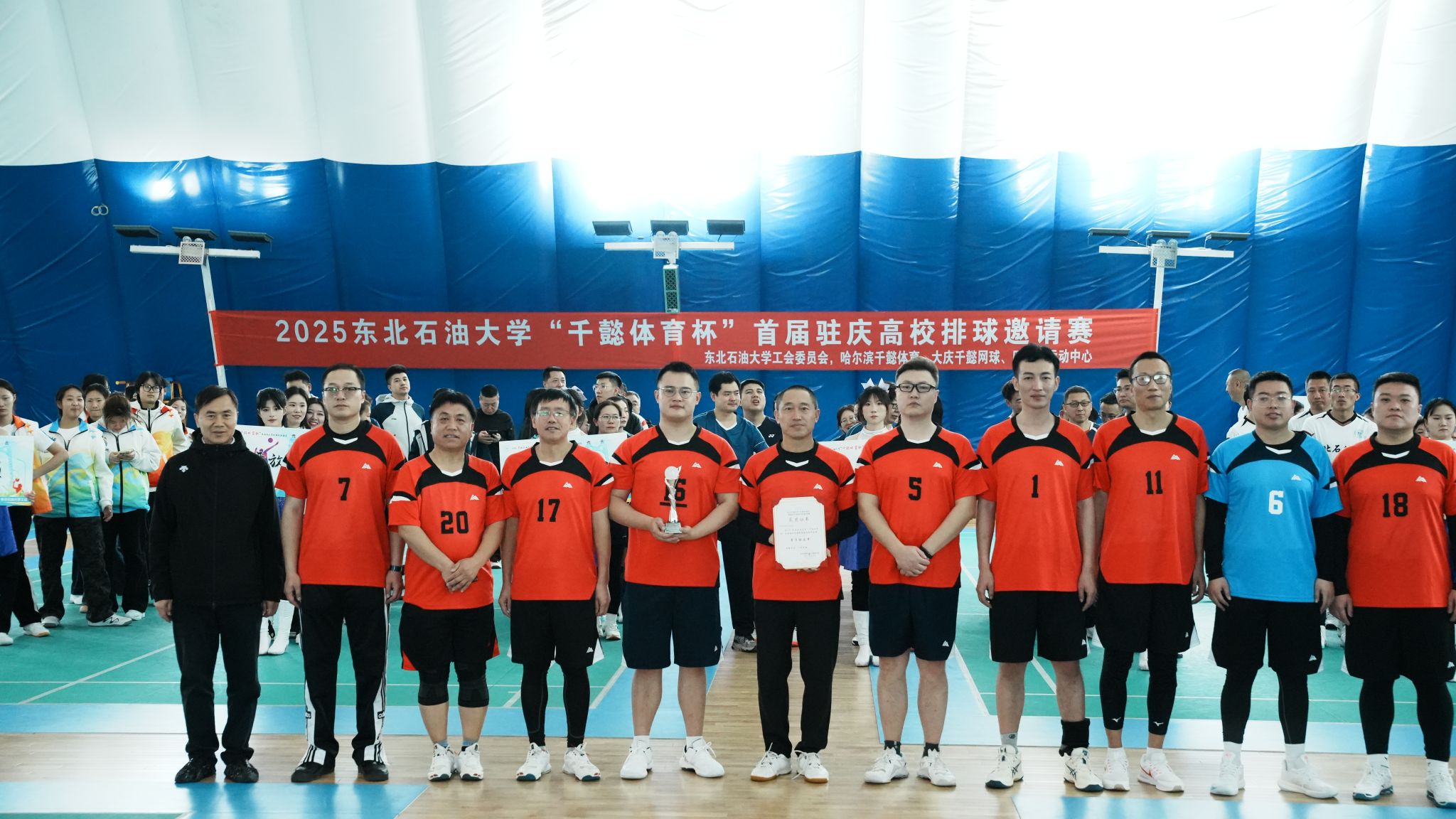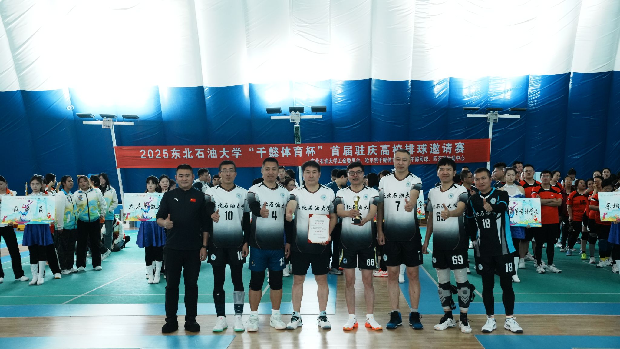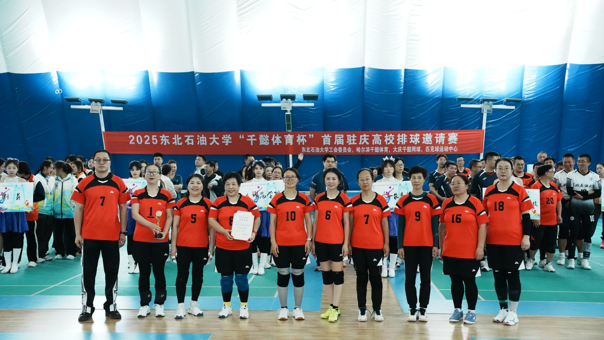 (记者 于晓雪)为促进大庆市各高校体育交流,展现高校教师精神风采,积极落实“文化润校”工程,11月29日,由哈尔滨千懿体育有限公司冠名、东北石油大学校工会主办的2025东北石油大学“千懿体育杯”首届驻庆高校排球邀请赛正式拉开帷幕。东北石油大学校党委副书记、工会主席于长青,黑龙江八一农垦大学工会副主席耿军,大庆医学高等专科学校党委副书记、工会主席陈庆余,大庆开放大学校长于天龙,大庆开放大学副校长梁文超、大庆开放大学副校长张云斌出席开幕式。来自黑龙江八一农垦大学、大庆师范学院、大庆医学高等专科学校、大庆开放大学五所驻庆高校男女共计11支队伍参赛。