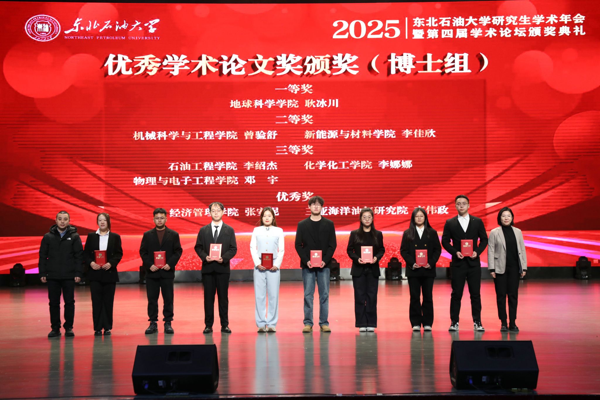 经专家评审,最终评选优秀学术论文奖博士组8名、硕士组22名;优秀学术报告奖博士组11名、硕士组23名;专业实践杰出奖6名、优秀奖10名。地球科学学院、石油工程学院、化学化工学院、物理与电子工程学院、马克思主义学院获优秀组织奖。