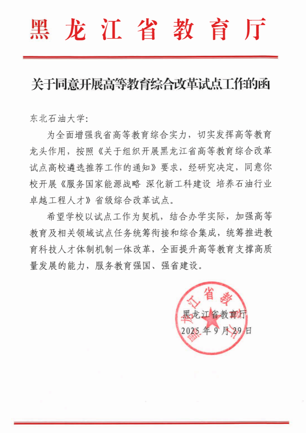 编者按:“十四五”时期是东油发展历程中极不平凡、具有里程碑意义的五年。学校以习近平新时代中国特色社会主义思想为指导,深入贯彻落实党的十九大、二十大精神,全国教育大会精神,坚持党的教育方针,把牢社会主义办学方向,落实立德树人根本任务,锚定国内一流能源大学建设目标,遵循“强陆—拓海—壮新”发展思路,深入实施“三步走”发展战略,成功跻身黑龙江省国内一流大学建设高校行列,推动各项事业实现了增值性、高质量发展,为“十五五”时期再上新台阶奠定了坚实基础。站在新的历史起点,学校推出“回望‘十四五’ 奋进新征程”系列报道,回顾奋斗历程,见证发展成就,凝聚前行力量,引导全体东油人为创建国内著名国际知名一流能源大学再建新功、共谱华章。