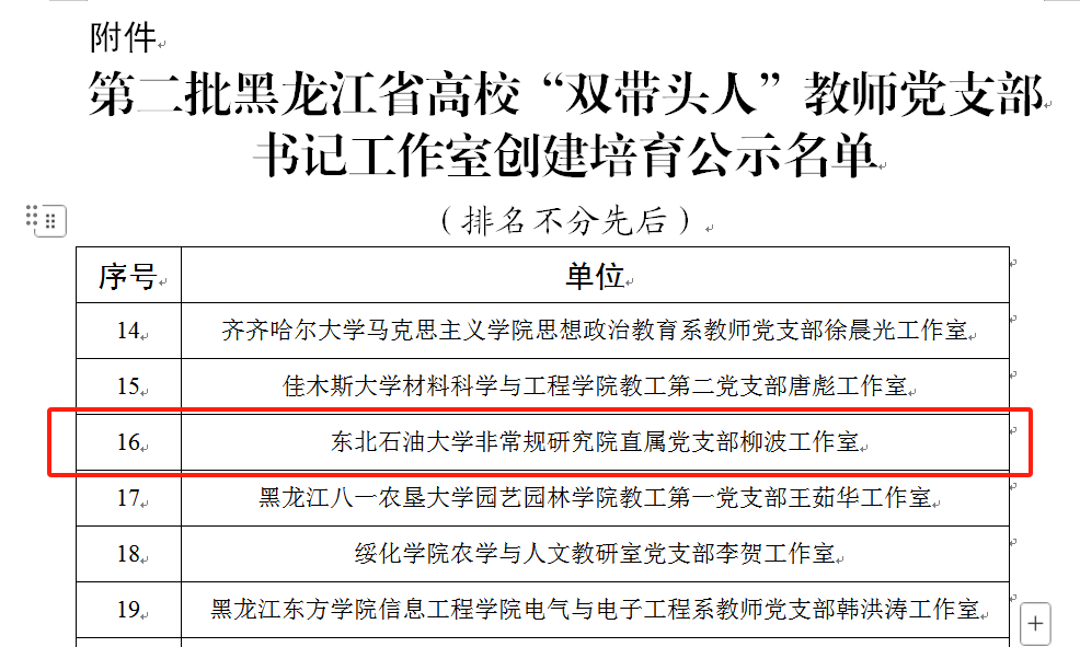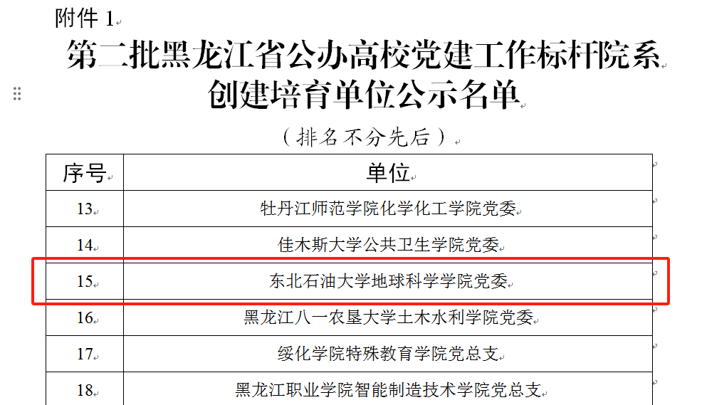 3月17日,黑龙江省委教育工委公示第二批黑龙江省公办高校党建“示范创建”名单和第二批黑龙江省高校“双带头人”教师党支部书记工作室创建培育名单,我校获批全省高校标杆院系1个、样板支部3个、“双带头人”教师党支部书记工作室1个,数量创历史新高。学校坚持把党的全面领导贯穿办学治校各方面、融入教书育人全过程。深入贯彻党的二十届四中全会精神,党建根基更加夯实,获省高校党支部书记素质能力大赛三等奖、优秀奖各1项,5部微党课入选龙江先锋网“党课开讲啦”栏目。有效开展深入贯彻中央八项规定精神学习教育,在省属企业、省管高校深入贯彻中央八项规定精神学习教育整改整治工作调研座谈会上发言,全面从严治党进一步筑牢。能力作风建设持续深化,党员干部思想观念、工作作风明显转变,能力素质有效提升,工作成果在全省深化能力作风建设工作动态刊发。