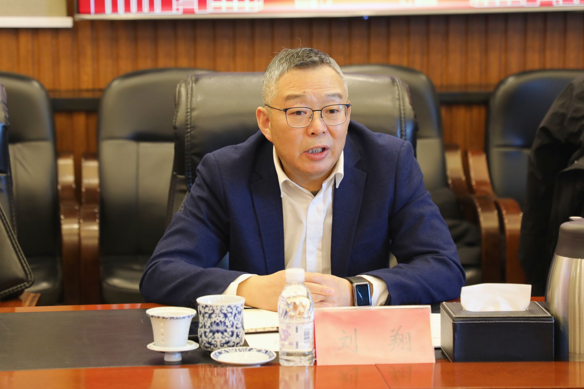 付晓飞对刘翔一行表示欢迎,并介绍我校发展历程、科技成果转化等情况。他指出,东北石油大学依托大庆油田优势,在石油能源领域积淀深厚。学校在燃气轮机研发上具备显著优势,相关技术已通过油田严苛验证,学校愿与中检江苏公司深化合作,充分发挥研发与应用市场优势,依托中检央企平台推动技术规模化落地,为国家能源安全与绿色低碳发展贡献校地协同力量。