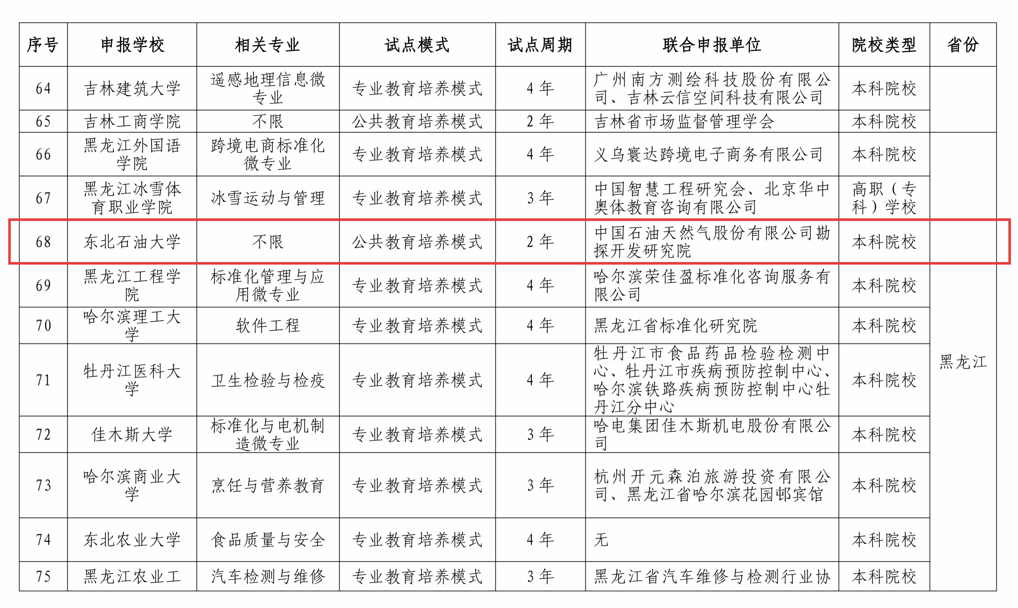 (通讯员 胡烨 记者 冯丹)为贯彻落实《国家标准化发展纲要》《标准化人才培养专项行动计划(2023—2025年)》《教育强国建设规划纲要(2024—2035年)》精神,将标准化教育全面融入高等教育体系,培养高素质复合型人才,国家市场监督管理总局、教育部于近日联合公布了全国首批专业与标准化教育融合试点名单,我校由教务处牵头,依托石油工业节能节水专业标准化技术委员会秘书单位工作基础,联合中国石油天然气股份有限公司勘探开发研究院等油气头部企业,成功入围并获批全国281个试点项目之一。