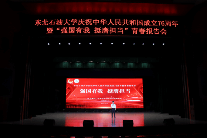 (图/文 杨宾 记者 杨雨剑)为庆祝中华人民共和国成立76周年,深入学习贯彻习近平新时代中国特色社会主义思想,激励青年学子增强服务国家战略、投身民族复兴的责任感与使命感,9月26日,我校举行庆祝中华人民共和国成立76周年暨“强国有我,挺膺担当”青春报告会。教务处、大庆精神教育研究中心、校团委、各二级学院相关负责人出席。