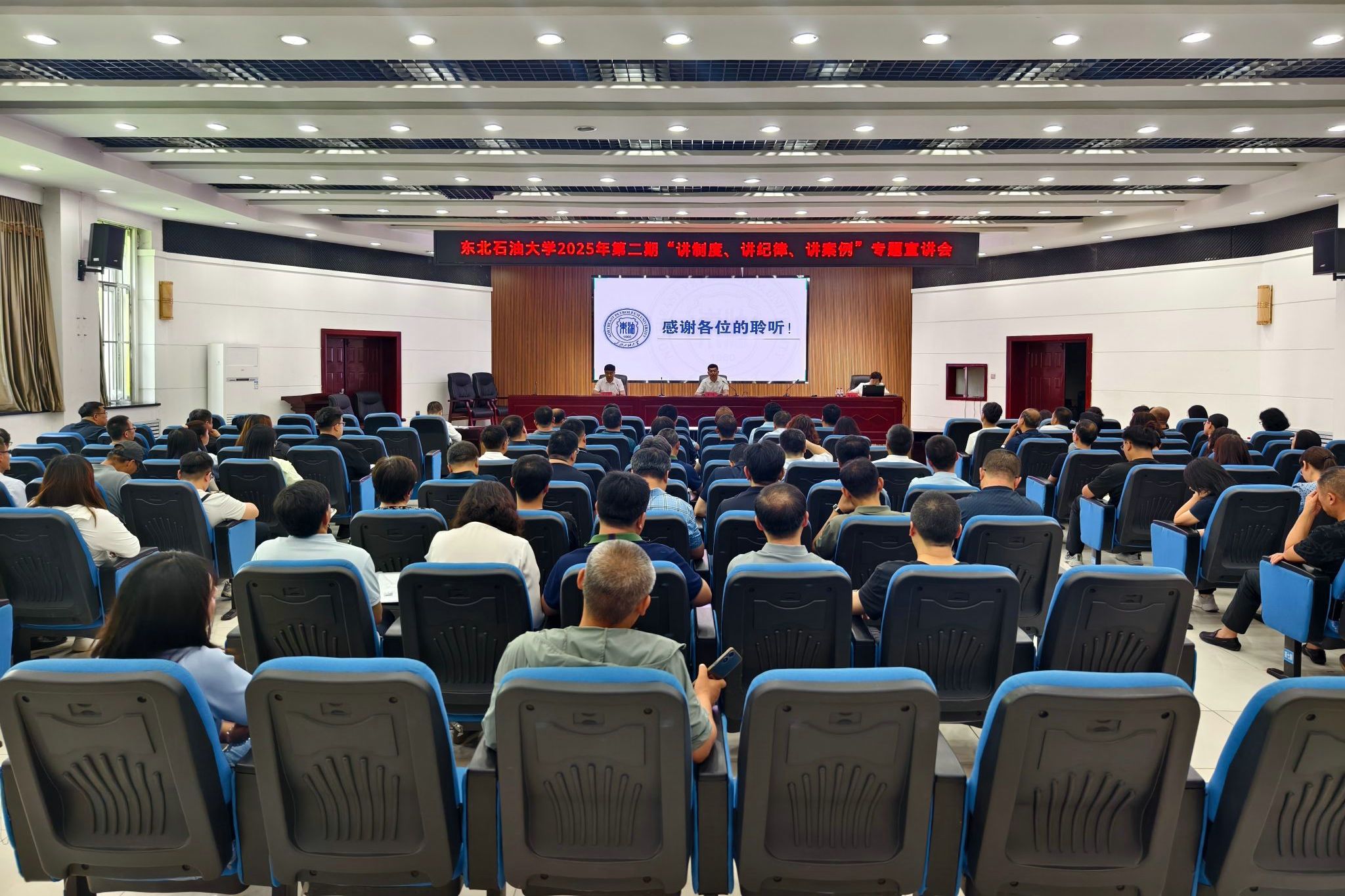 将“廉洁文化”纳入人才培养体系,创新廉洁教育主课堂,是落实“三全育人”战略的关键举措,更是塑造青年价值观、培育廉洁意识的主渠道。学校纪委联合马克思主义学院、外国语学院等多名优秀教师共同打造《廉洁文化》选修课,该课程以习近平总书记关于加强新时代廉洁文化建设的重要论述为遵循,涵盖全面从严治党、廉洁家风建设、理想信念教育、大庆精神育人等多个模块,通过“理论讲授+课内研讨+实践延伸”的系统教学,层层递进传递“以廉为荣、以贪为耻”的核心价值,教育引导学生在思想层面建立起抵御诱惑的“防火墙”,让廉洁理念真正内化于心、外化于行,截止目前已面向全校本科生开设四轮选修课程。