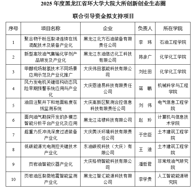 东油获批2025年度黑龙江省环大学大院大所创新创业生态圈联合引导资金