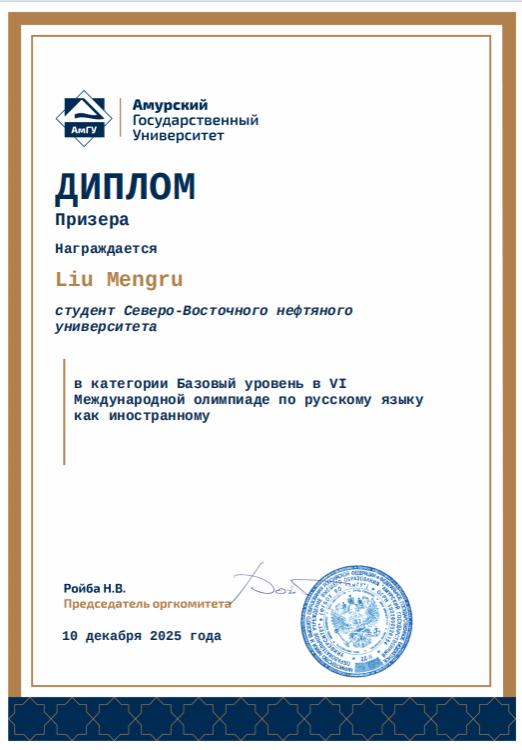 东油学子在俄罗斯阿穆尔国立大学第六届对外俄语奥林匹克竞赛中荣获佳绩
